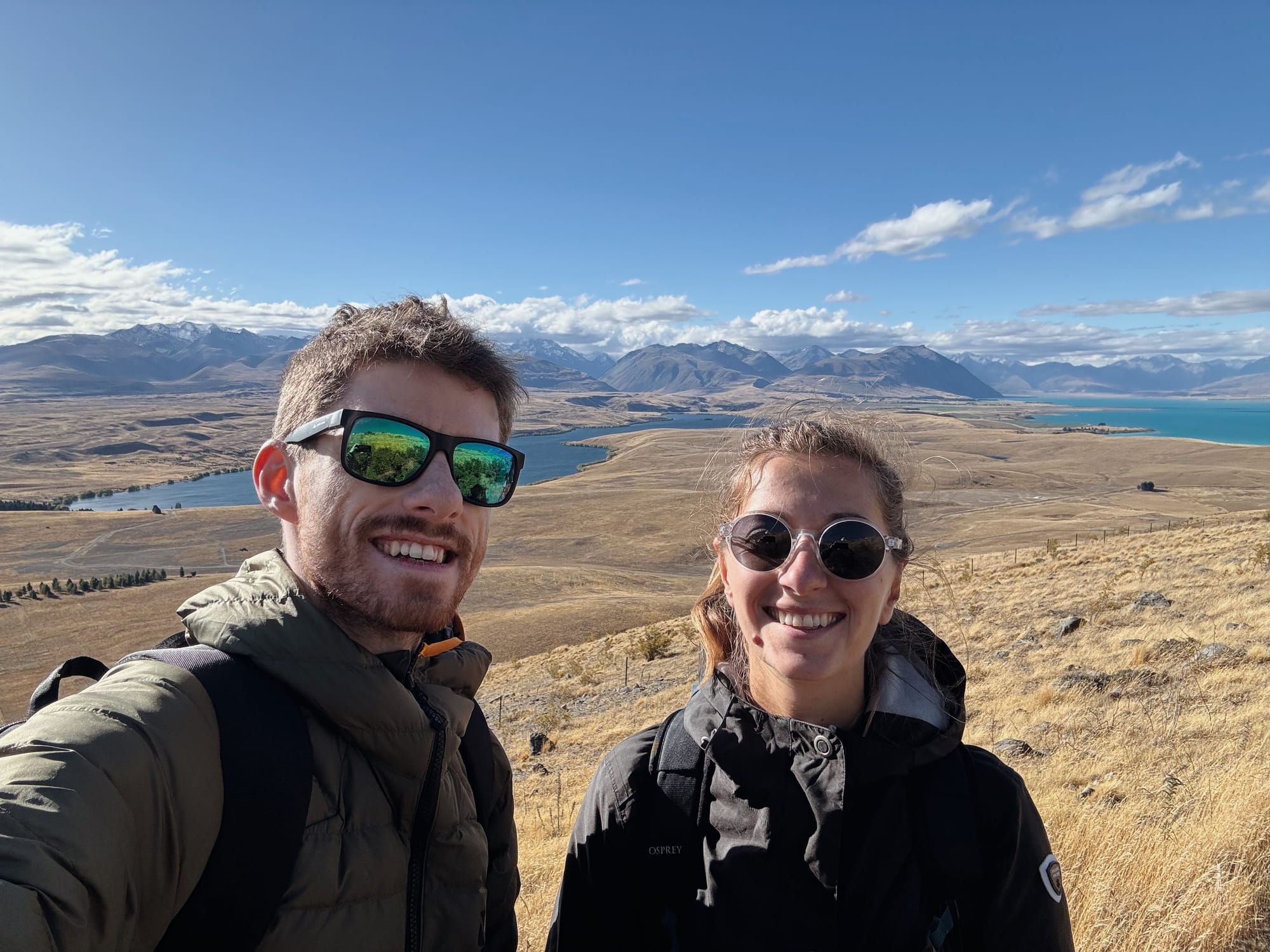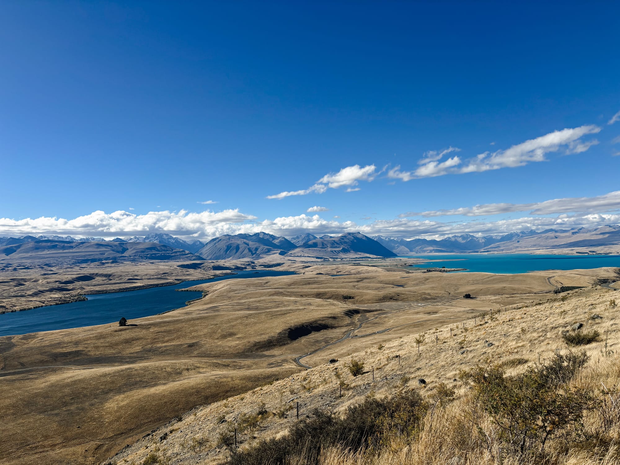 Le contraste avec Christchurch est énorme, on aperçois à l’horizon de grandes montagnes, on arrive dans les Alpes du Sud néo-zélandaise.